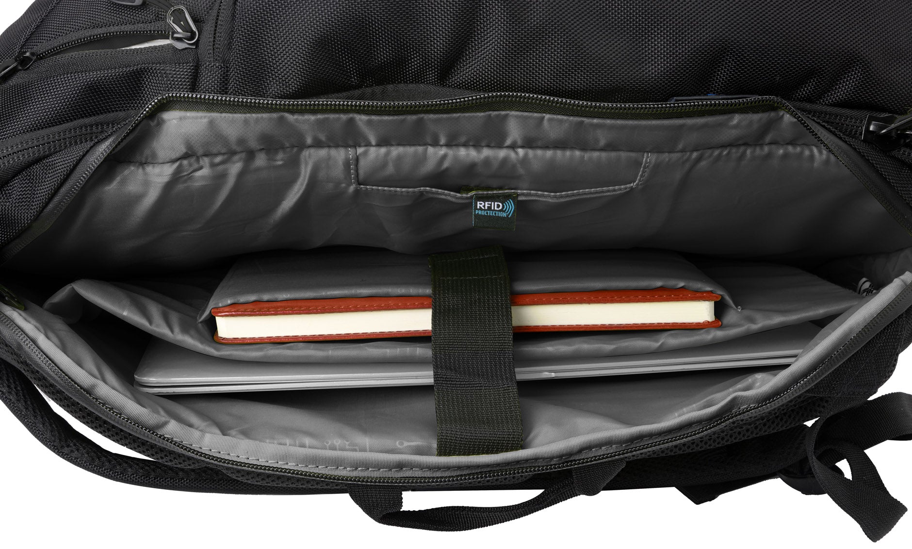 RFID PROTECTION POCKET: Travel without worries. The RFID protection compartment protects your personal data from being accessed by RFID scanners (e.g. credit cards, passports and driver’s licenses).